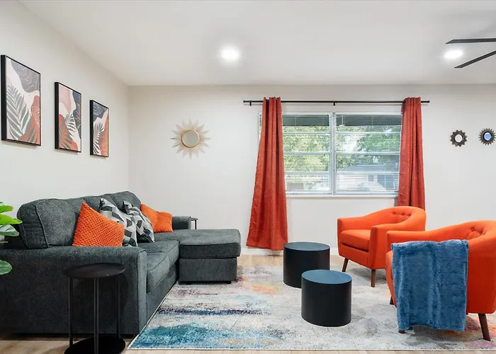 Der Upstay - Bungalow W Games Golf Fire And Patio ist zentral in North Loop gelegen, einem Stadtteil, der bekannt ist für seine charmanten Einfamilienhäuser und eine freundliche Nachbarschaftsatmosphäre. In der Umgebung finden sich zahlreiche Freizeitmöglichkeiten, während das Texas Memorial Stadium und das Moody Center nur wenige Kilometer entfernt sind.